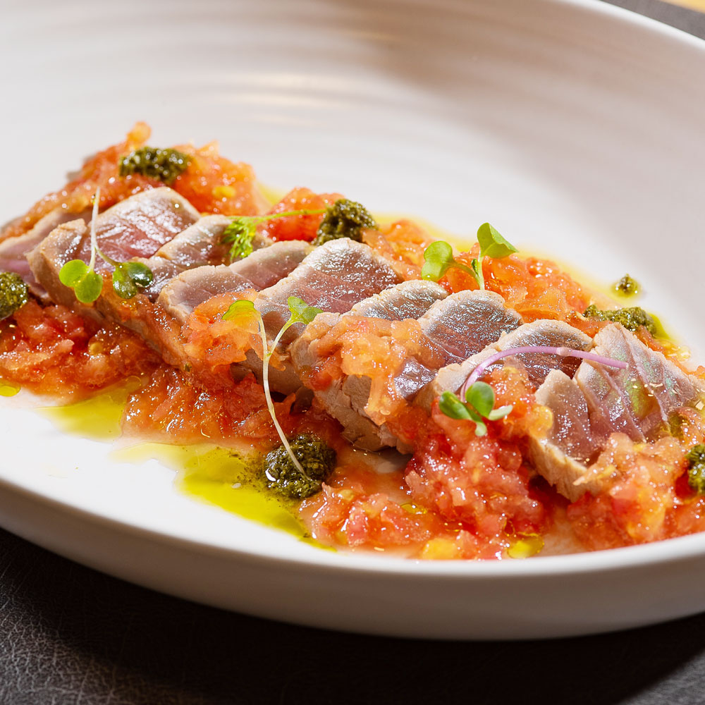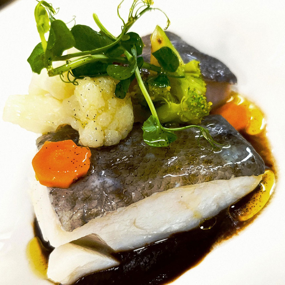 Dados de bacalao con salsa de ajo y verduras a la vainilla